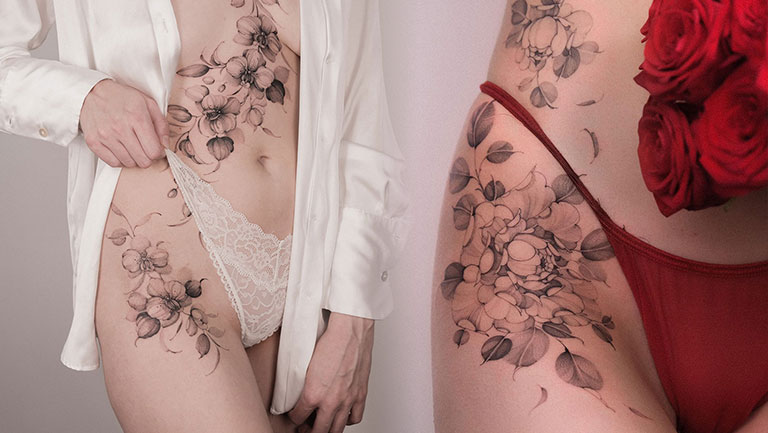 Tatouage Floral sur Hanche – Beauté Naturelle